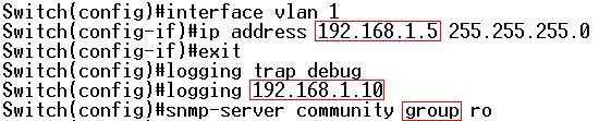 - Step 5. On the switch you will have to enter these basic commands. You can add more like an access list but this is just the basics. First you will need to configure the Vlan you will be operating on. Then you will need to be in configure terminal. Enter logging trap debug. Then enter logging (ip address of cacti). Then enter snmp-server community (Community Name) ro. Now your switch should be set.