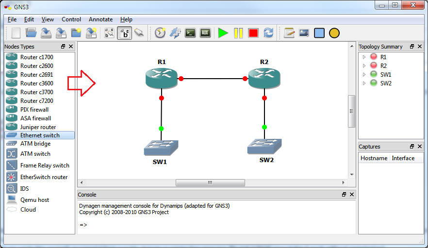 Once want the IOS image is loaded, you are ready to start your topology and power on your routers. Remember that the only platform router supported the image you have loaded is useable. You have to add the image supported the platform router that you want to use. In this example I add the image from the 2600 series router, so I will be able to use the 2600 router only.